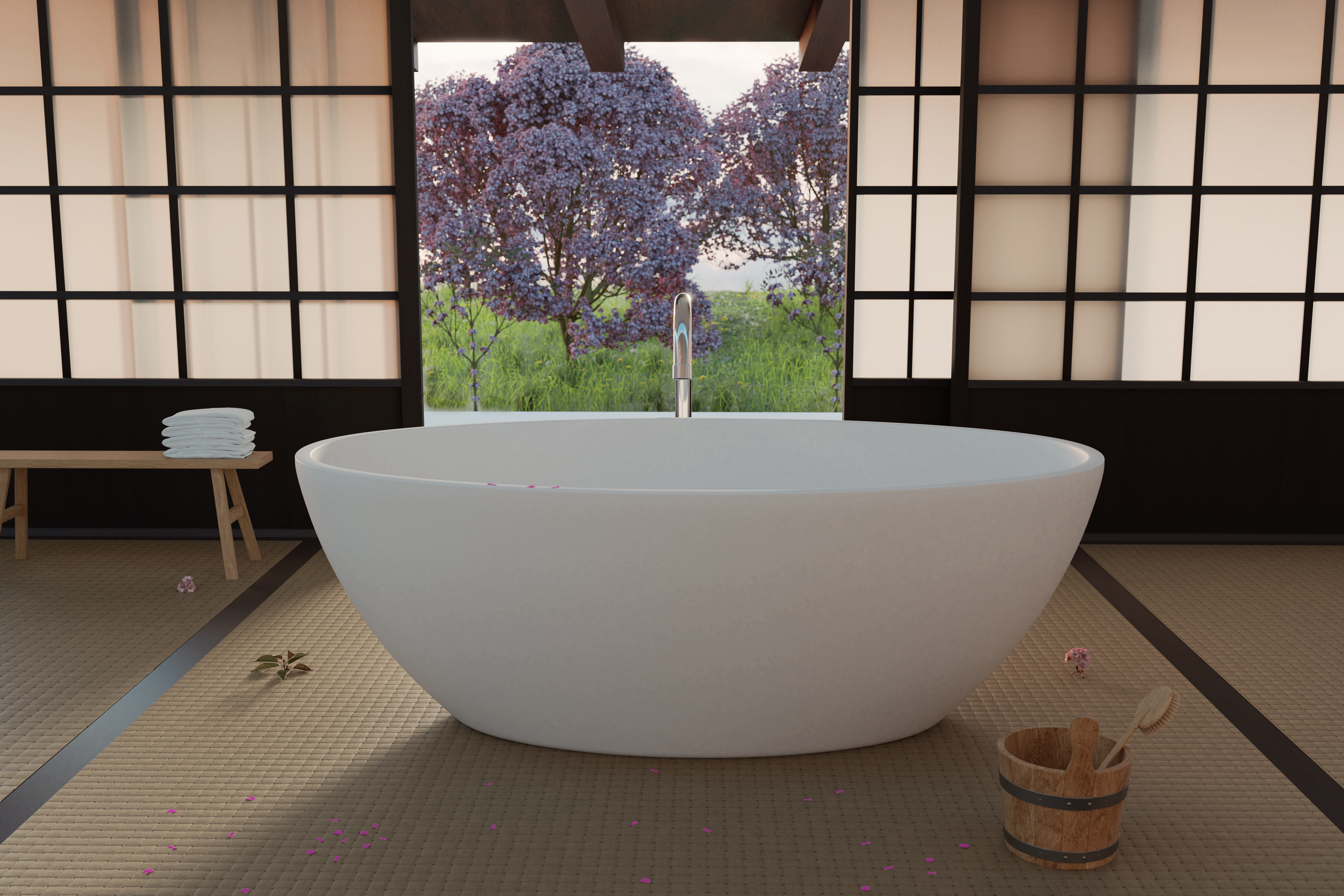 Die Badewanne bildet das Herzstück der Nasszelle, denn das Baden hat eine Tradition in Japan: über das ganze Land hinweg sind mehrere Quellen und Bäder verteilt, auch Onsen oder Snetos genannt.