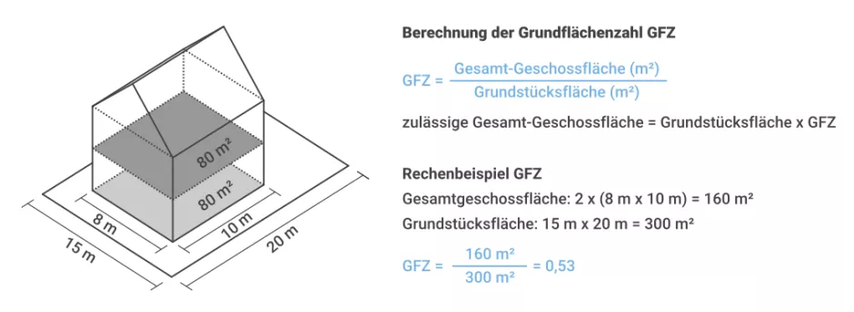 Geregelt wird die GFZ durch die Baunutzungsverordnung (BauNVO § 20) und die DIN 277 – Grundflächen und Rauminhalte im Hochbau.