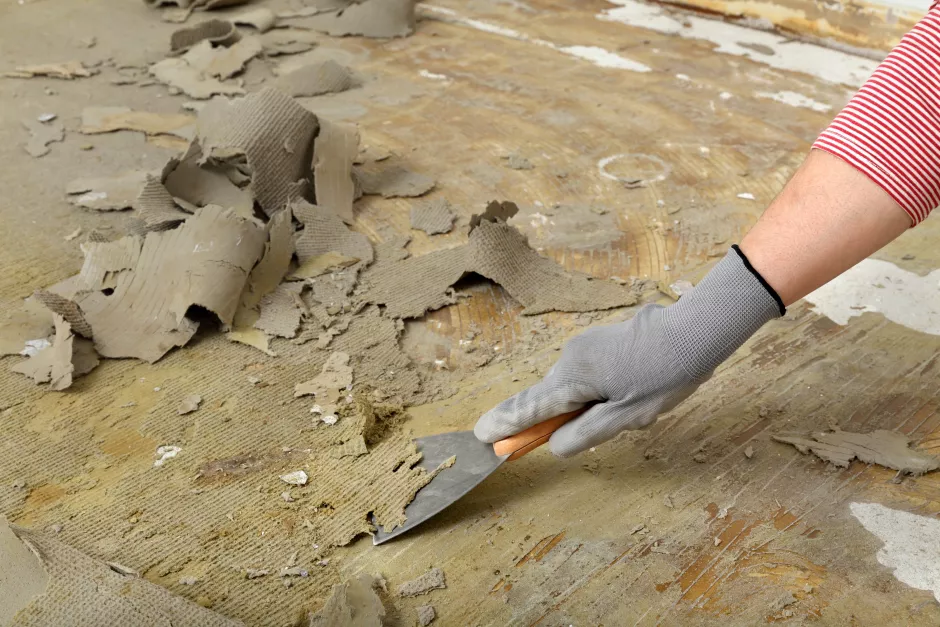 Teppichboden entfernen: Teppichkleberreste entfernen und Unebenheiten ausgleichen